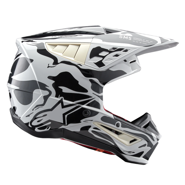 The SM5 helmet has been designed to provide MX riders with a helmet that is safe and purposefully designed to deliver optimal protection and comfort. The lightweight SM5 helmet features a thermo-injected shell incorporating a special polymer blend enhanced by varying degrees of thickness that is engineered to deliver the optimal combination of impact protection and light weight, while the five density EPS liner ensures the correct density in the correct area for enhanced impact absorption.