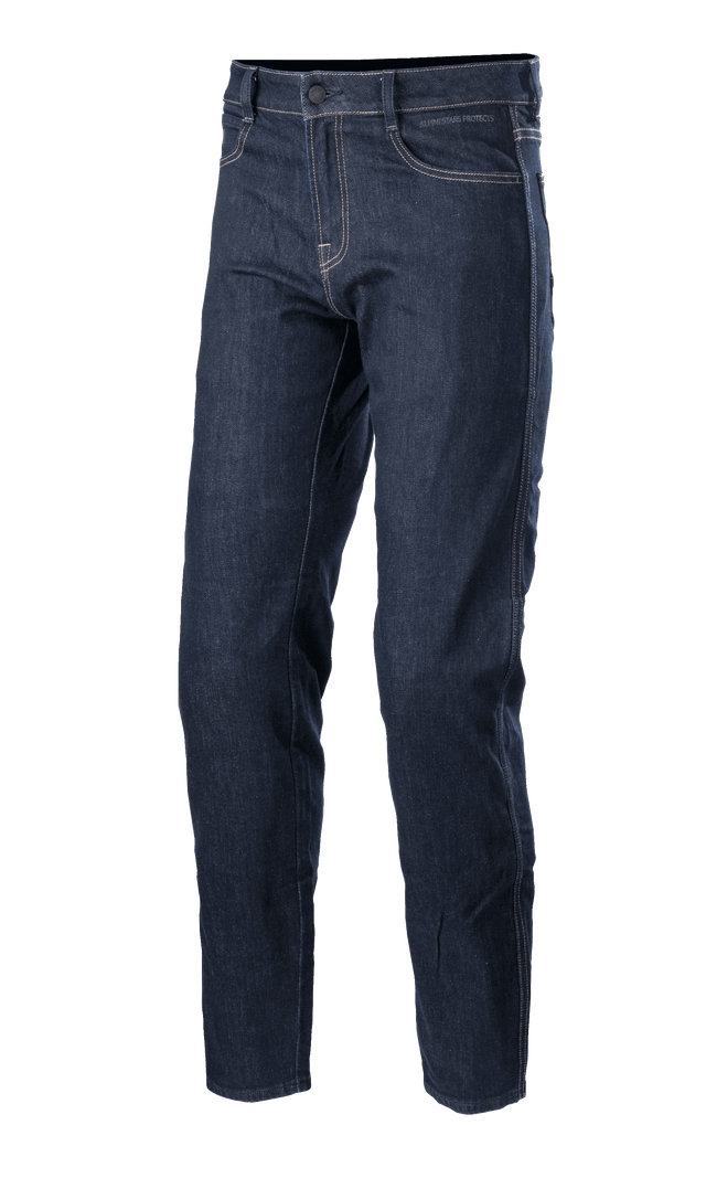 Innere Stoffeinsätze aus Aramidfaser verstärken den Denim-Stoff an kritischen Punkten wie dem Knie für zusätzlichen Schutz in kritischen Bereichen.